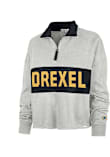Embrace the warmth and showcase your Dragons pride with our Drexel Dragons Long Sleeve Qtr Zip. This Womens Grey Remi Long Sleeve Pullover offers a screen print team name on center panel for the perfect combination of comfort and style. Elevate your everyday look with this must-have Drexel Dragons Long Sleeve Qtr Zip.