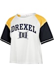 Display your team spirit with this remarkable Drexel Dragons White Serenity Gia Short Sleeve T-Shirt! The Drexel Short Sleeve Tee showcases a screen print team graphic that truly sets it apart. Stand out from the crowd and proudly declare your allegiance to the Dragons with this exceptional White Drexel T-Shirt. Go Dragons!!