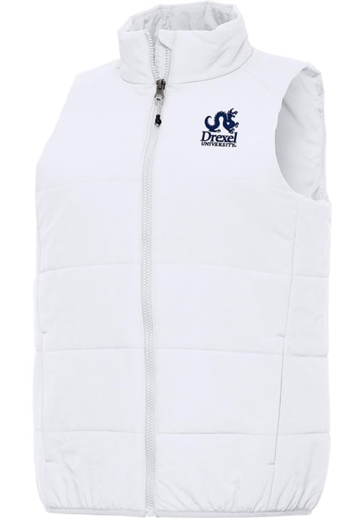 Gear up for the upcoming tailgate with the ultimate Drexel Dragons Womens White Vest. Stay warm in this Drexel Academic Experience Sleeveless Jacket, which features a matte puffer jacket fabric.