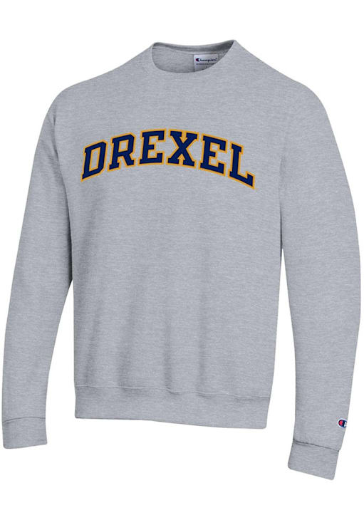 Mens Drexel Dragons Grey Champion Tackle Twill Arch Name Crew Sweatshirt