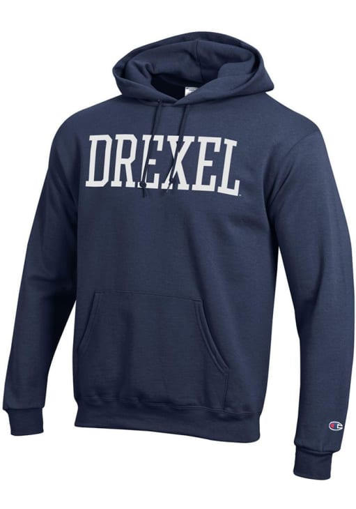 Mens Drexel Dragons Navy Blue Champion Straight Powerblend Hooded Sweatshirt