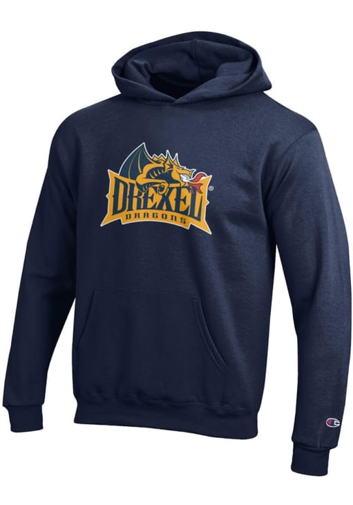Go to gamedays in style in this Youth Navy Blue Drexel Dragons Champion Powerblend Hooded Sweatshirt! This Dragons Hoodie features a printed team graphic that will be sure to keep you warm and cozy.