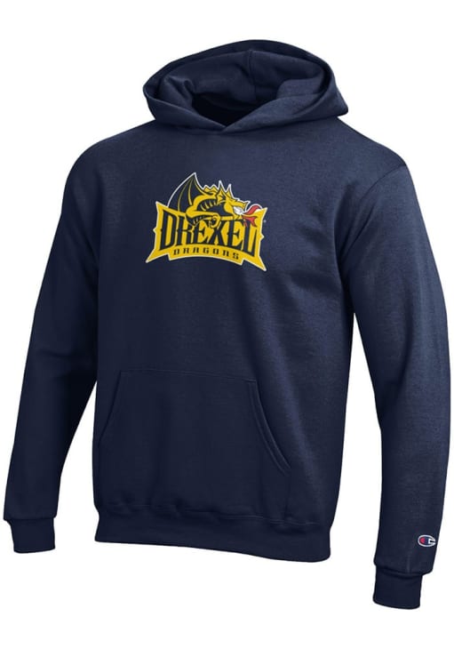 Go to gamedays in style in this Youth Navy Blue Drexel Dragons Champion Team Logo Hooded Sweatshirt! This Dragons Hoodie features a screenprint team graphic that will be sure to keep you warm and cozy.