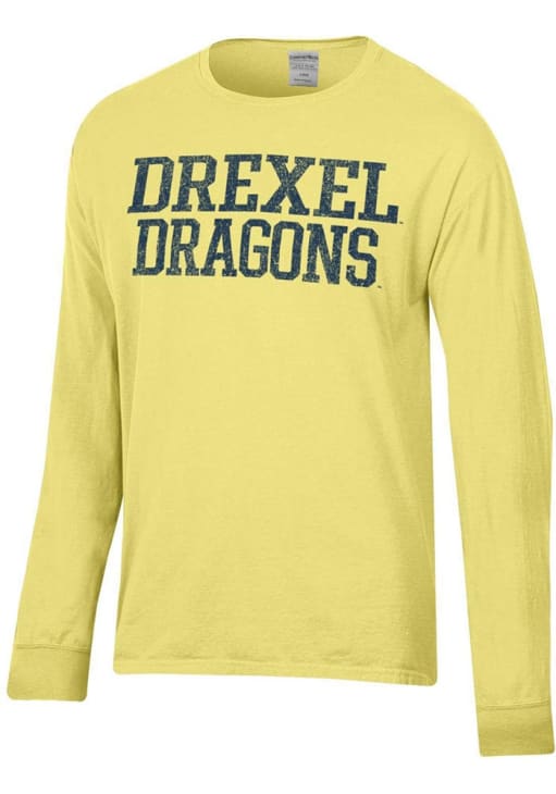 Show your Drexel Dragons spirit in this Drexel Yellow T Shirt! This Drexel Stacked Garment Dyed Long Sleeve T Shirt makes a great layer for cooler nights cheering on the Dragons. Featuring a screen print team graphic on front chest, this Drexel Dragons Long Sleeve Tee is an essential addition for every fan. Go Dragons!!