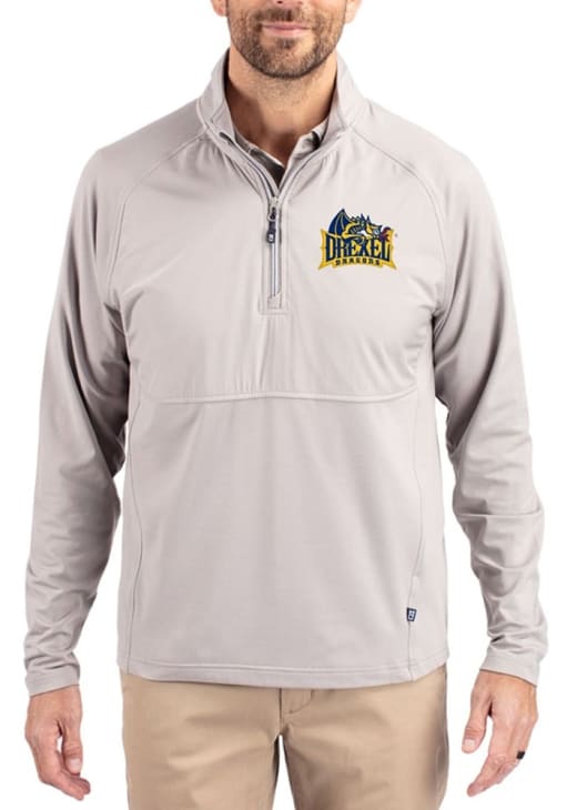 Embrace the warmth and showcase your Dragons pride with our Drexel Dragons Long Sleeve Qtr Zip Pullover. This Mens Grey Adapt Eco Hybrid Long Sleeve Pullover offers a wind resistant recycled shell for the perfect combination of comfort and style. Elevate your everyday look with this must-have Drexel Dragons Long Sleeve Qtr Zip Pullover.