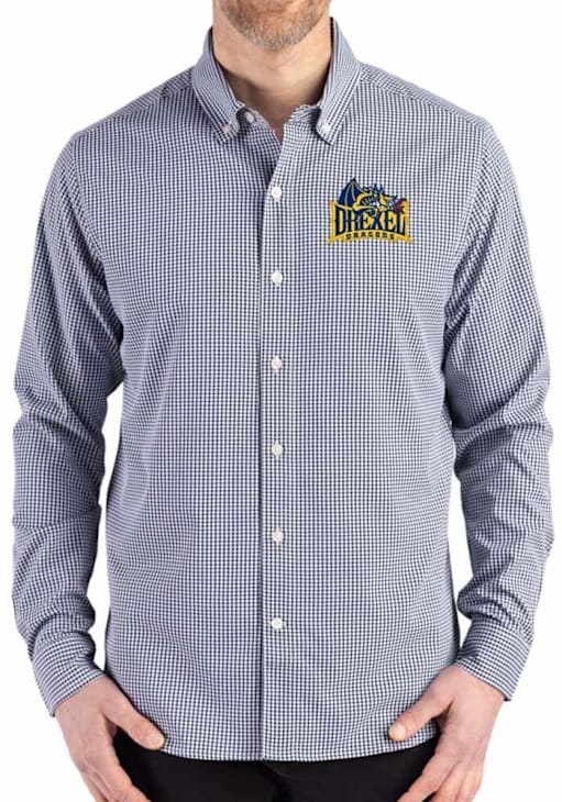 Show your Dragons spirit show in the office with this Drexel Dragons Dress Shirt! Embrace your team spirit and showcase it proudly in this Mens Navy Blue Gingham LS Woven Long Sleeve Long Sleeve Button Down Shirt. This Long Sleeve Dress Shirt features a team logo.