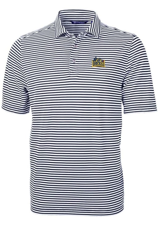 Mens Drexel Dragons Navy Blue Cutter and Buck Virtue Eco Pique Stripe Short Sleeve Polo Shirt