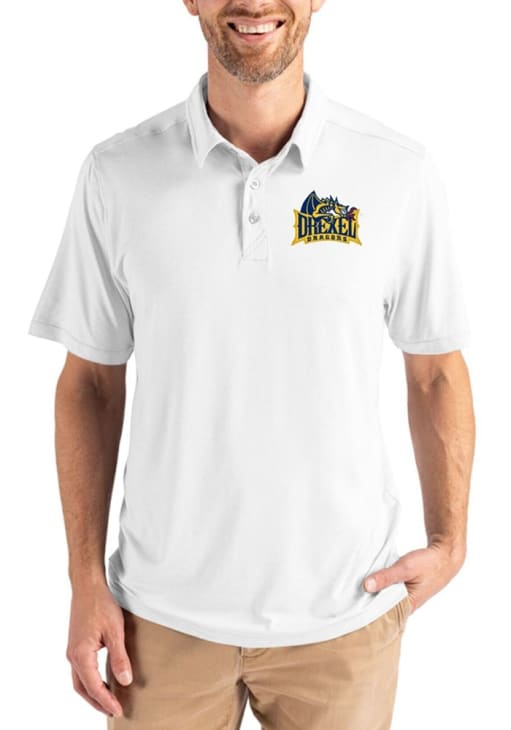 Mens Drexel Dragons White Cutter and Buck Coastline Eco Short Sleeve Polo Shirt