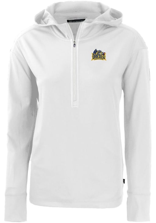 Embrace the warmth and showcase your Dragons pride with our Drexel Dragons Long Sleeve Qtr Zip. This Womens White Daybreak Hood Long Sleeve Pullover offers a moisture wicking material for the perfect combination of comfort and style. Elevate your everyday look with this must-have Drexel Dragons Long Sleeve Qtr Zip.