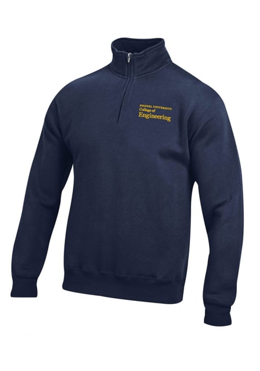 Embrace the warmth and showcase your Dragons pride with our Drexel Dragons Long Sleeve Qtr Zip Pullover. This Mens Navy Blue COLLEGE OF ENGINEERING Embroidered Long Sleeve Pullover offers a team graphic on front chest for the perfect combination of comfort and style. Elevate your everyday look with this must-have Drexel Dragons Long Sleeve Qtr Zip Pullover.