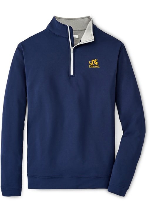 Embrace the warmth and showcase your Dragons pride with our Drexel Dragons Long Sleeve Qtr Zip Pullover. This Mens Navy Blue Perth Long Sleeve Pullover offers a team logo on left chest for the perfect combination of comfort and style. Elevate your everyday look with this must-have Drexel Dragons Long Sleeve Qtr Zip Pullover.