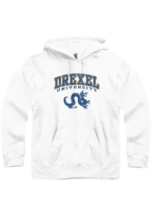 Embrace your Dragons pride and showcase your team spirit with confidence in this Drexel Dragons Long Sleeve Hoodie! Stay warm and stylish with the Drexel Mens White Arch Mascot Hooded Sweatshirt. Designed with screenprint team graphic, this Dragons Long Sleeve Hoodie is a must-have for dedicated fans.