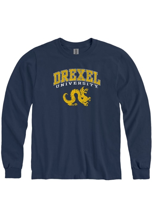 Show your Drexel Dragons spirit in this Drexel Navy Blue T Shirt! This Drexel Arch Mascot Long Sleeve T Shirt makes a great layer for cooler nights cheering on the Dragons. Featuring a screenprint graphics, this Drexel Dragons Long Sleeve Tee is an essential addition for every fan. Go Dragons!!