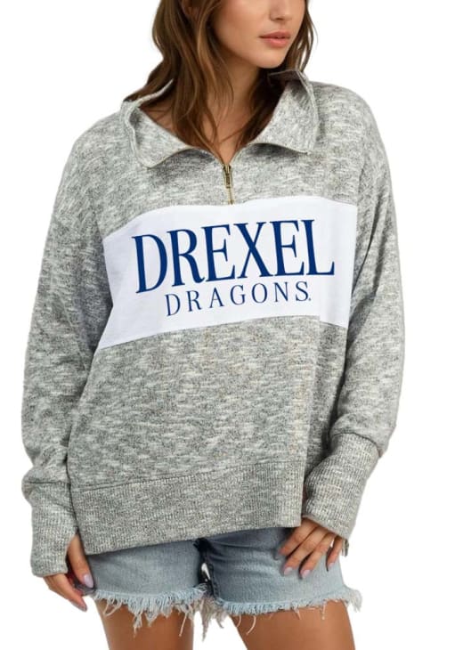 Embrace the warmth and showcase your Dragons pride with our Drexel Dragons Long Sleeve Qtr Zip. This Womens Grey Classic Long Sleeve Pullover offers a Screen Printed Design for the perfect combination of comfort and style. Elevate your everyday look with this must-have Drexel Dragons Long Sleeve Qtr Zip.