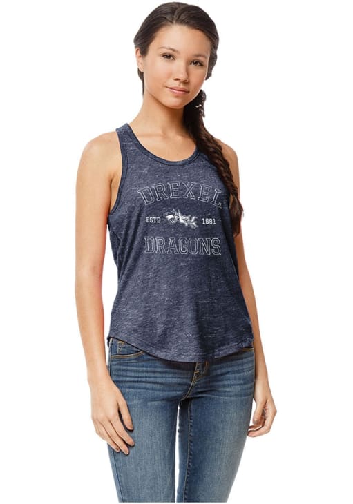 Elevate your tailgating style with this Drexel Dragons Womens Tank Top. Stay fashionable and comfortable in the refreshing Navy Blue Intramural Sleeveless Shirt. Discover the enticing details of this Drexel Tank Top, showcasing a screen print team graphic that's sure to impress.