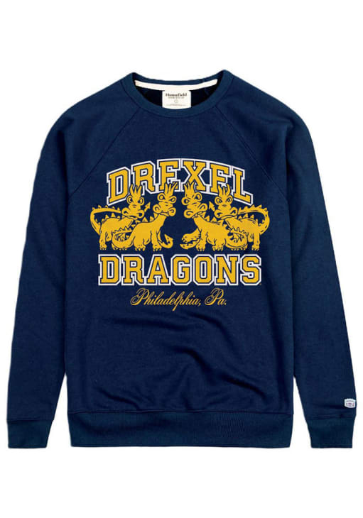 Gear up for the ultimate game day experience with this remarkable Drexel DragonsMens Navy Blue Retro Dragons Fashion Sweatshirt! Designed with the true fan in mind, this Dragons Long Sleeve Sweatshirt features a screenprint team graphic on front chest. Stay warm and comfortable with this Mens Drexel Dragons Fashion Sweatshirt.
