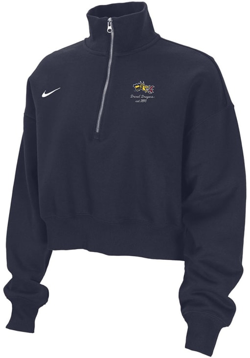 Embrace the warmth and showcase your Dragons pride with our Drexel Dragons Long Sleeve Qtr Zip. This Womens Navy Blue Phoenix Long Sleeve Pullover offers a embroidered team graphic for the perfect combination of comfort and style. Elevate your everyday look with this must-have Drexel Dragons Long Sleeve Qtr Zip.