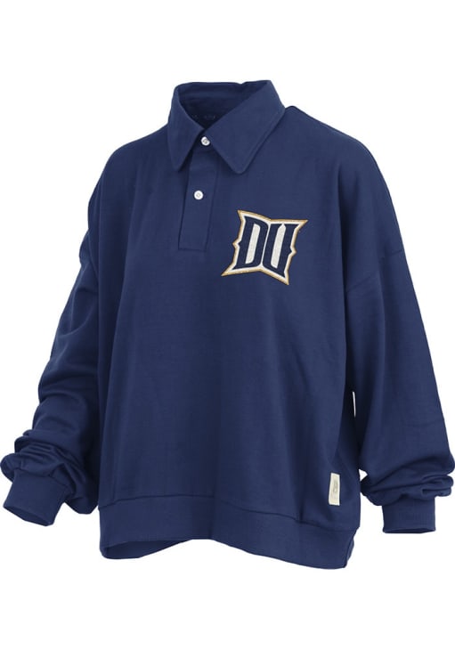 Make a bold statement in this Drexel Dragons Pressbox Womens Navy Blue Martha Long Sleeve Long Sleeve Polo! This Polo features a chenille team logo at left chest, making this Womens Long Sleeve Polo Shirt perfect for any Drexel fan who wants to display their spirit in any setting.