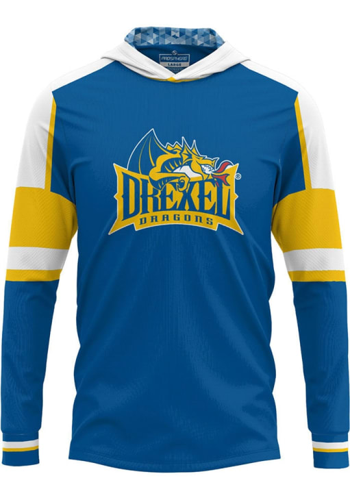 Embrace your Dragons pride and showcase your team spirit with confidence in this Drexel Dragons Long Sleeve Hoodie! Stay warm and stylish with the Drexel Mens Navy Blue Throwback Hooded Sweatshirt. Designed with fully sublimated design, this Dragons Long Sleeve Hoodie is a must-have for dedicated fans.