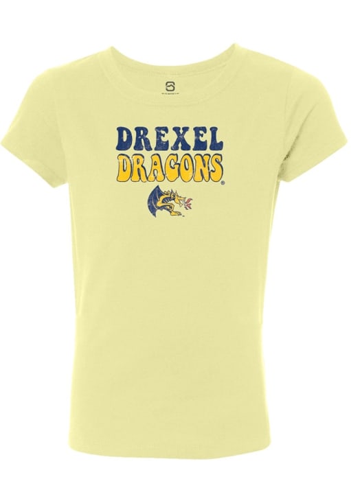 Support your favorite team in this Girls Gold Drexel Dragons Bubble Script Short Sleeve T-Shirt! This T-Shirt features a screen printed design, so everyone will know your favorite team is the Drexel! This is the perfect Drexel Dragons Girls T-Shirt for wearing to game day or everyday. Go Dragons!!