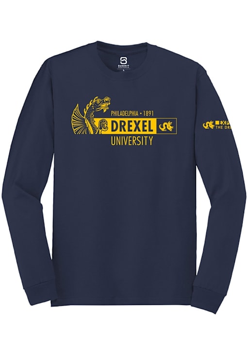 Show your Drexel Dragons spirit in this Drexel Navy Blue T Shirt! This Drexel Admitted Students Day 2024 Long Sleeve T Shirt makes a great layer for cooler nights cheering on the Dragons. Featuring a team logo, this Drexel Dragons Long Sleeve Tee is an essential addition for every fan. Go Dragons!!