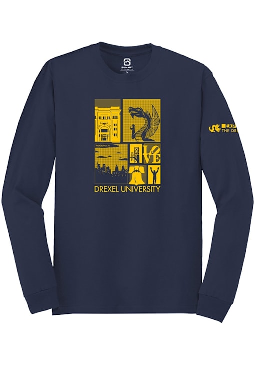 Show your Drexel Dragons spirit in this Drexel Navy Blue T Shirt! This Drexel Welcome Week 2023 Long Sleeve T Shirt makes a great layer for cooler nights cheering on the Dragons. Featuring a team logo, this Drexel Dragons Long Sleeve Tee is an essential addition for every fan. Go Dragons!!