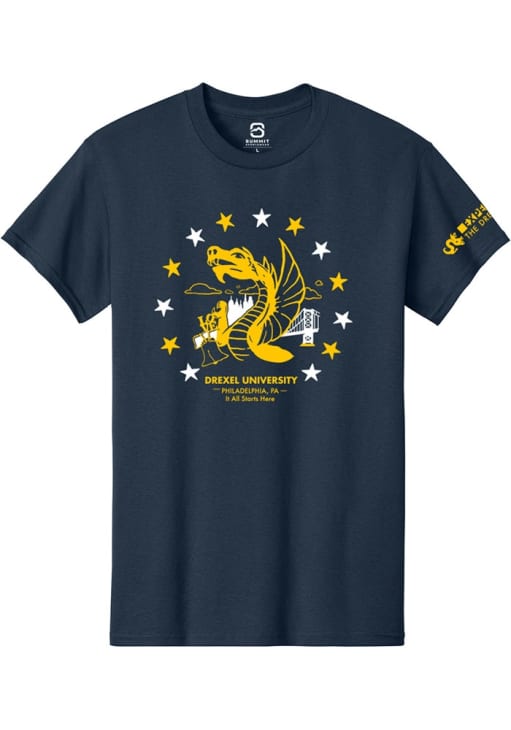 Display your team spirit with this remarkable Drexel Dragons Summit Sportswear Navy Blue Welcome Week 2021 Short Sleeve T Shirt! The Drexel Short Sleeve Tee showcases a team logo that truly sets it apart. Stand out from the crowd and proudly declare your allegiance to the Dragons with this exceptional Navy Blue Drexel T Shirt. Go Dragons!!
