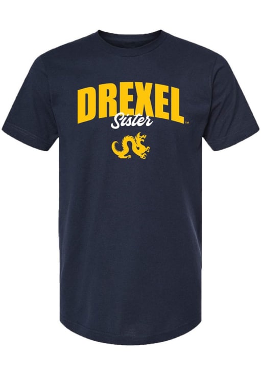 Display your team spirit with this remarkable Drexel Dragons Navy Blue Sister Short Sleeve T-Shirt! The Drexel Short Sleeve Tee showcases a screen print team graphic on center chest that truly sets it apart. Stand out from the crowd and proudly declare your allegiance to the Dragons with this exceptional Navy Blue Drexel T-Shirt. Go Dragons!!