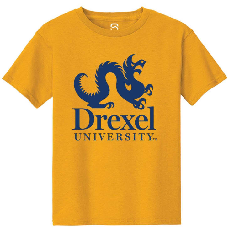 Product Details Product Details Rib collarDouble-needle stitched neckline, bottom hem and sleevesTaped neck and shouldersPre-shrunk cottonSeven-eighths inch seamless collarClassic Fit100% Ringspun CottonHits At Hip Officially Licensed Your future Drexel Dragons will be gameday ready in this GoldYouth Short Sleeve Tee. This Academic T-Shirt features a team logo.
