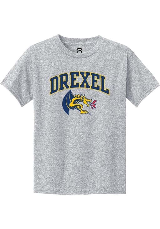 Product Details Product Details Rib collarDouble-needle stitched neckline, bottom hem and sleevesTaped neck and shouldersPre-shrunk cottonSeven-eighths inch seamless collarClassic Fit100% Ringspun CottonHits At Hip Officially Licensed Your future Drexel Dragons will be gameday ready in this GreyYouth Short Sleeve Tee. This Arch Logo T-Shirt features a team logo.