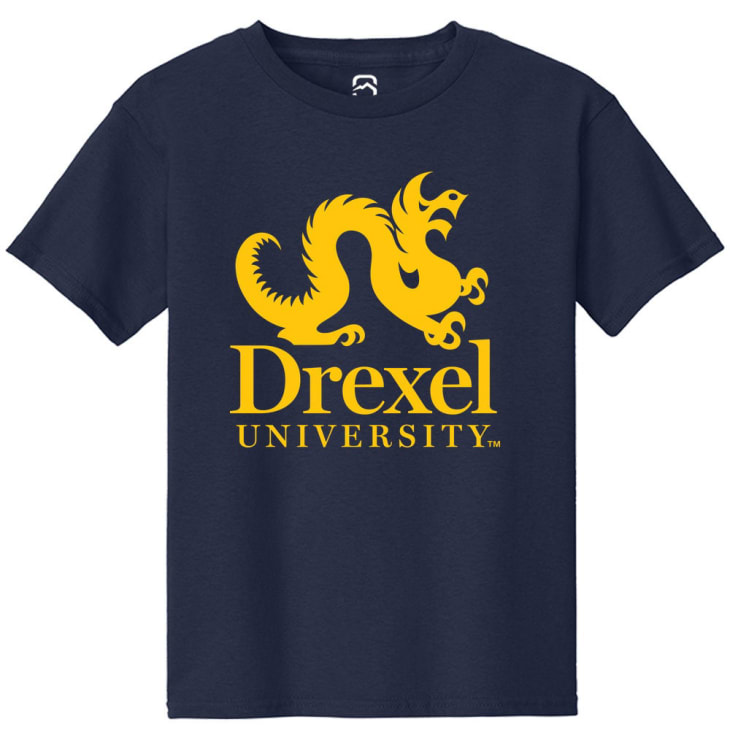 Product Details Product Details Rib collarDouble-needle stitched neckline, bottom hem and sleevesTaped neck and shouldersPre-shrunk cottonSeven-eighths inch seamless collarClassic Fit100% Ringspun CottonHits At Hip Officially Licensed Your future Drexel Dragons will be gameday ready in this Navy BlueYouth Short Sleeve Tee. This Primary Logo T-Shirt features a team logo.