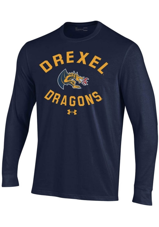 Show your Drexel Dragons spirit in this Drexel Navy Blue T Shirt! This Drexel Circle Arch Performance Long Sleeve T Shirt makes a great layer for cooler nights cheering on the Dragons. Featuring a screen print graphics, this Drexel Dragons Long Sleeve Tee is an essential addition for every fan. Go Dragons!!