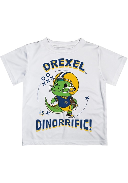 Product Details Product Details Moisture wicking breathable soft natural feel knit fabricLightweight fabric for easy comfortSublimated graphics and colors Officially Licensed Every future Drexel Dragons fan need a White Infant Short Sleeve Tee. This Dino-Riffic T-Shirt features a sublimated team graphic.